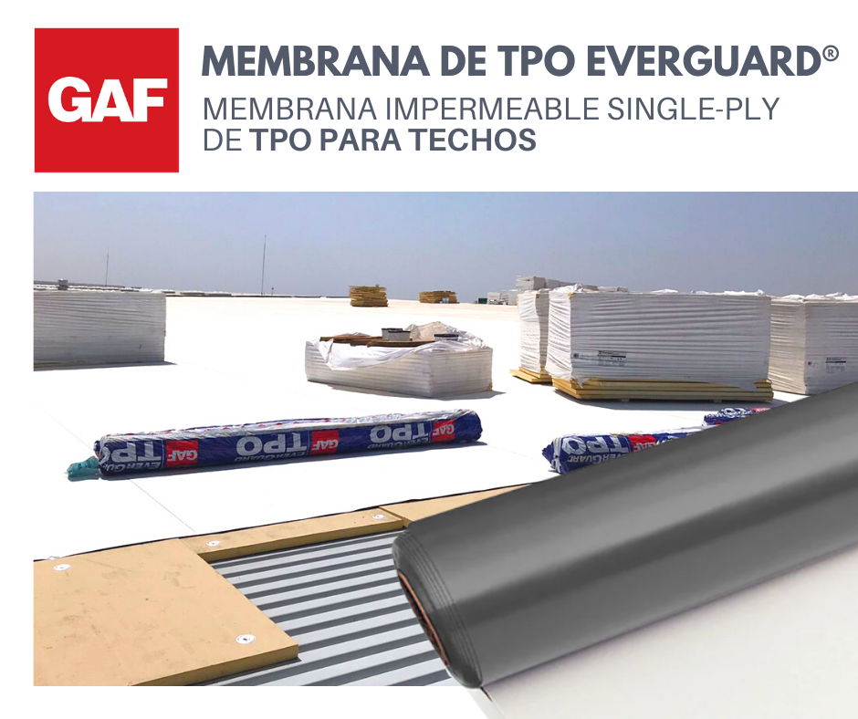 Membrana plástica impermeabilizante y reflectiva fabricada a base de poliolefina termoplástica (TPO) y refuerzo de poliéster, ideal para impermeabilizar cubiertas nuevas y/o existentes de metal y concreto y puede ser utilizado para diseñar pendientes. |